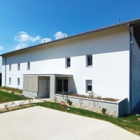 - positionner le projet comme un outil de dialogue avec le grand paysage et les abords proches, comme un bâtiment «paysage» en signal depuis l’A41 notamment grâce à sa toiture végétalisée dont les lignes font écho au dessin