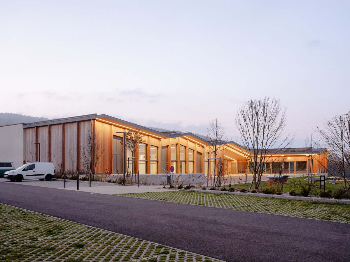 - positionner le projet comme un outil de dialogue avec le grand paysage et les abords proches, comme un bâtiment «paysage» en signal depuis l’A41 notamment grâce à sa toiture végétalisée dont les lignes font écho au dessin